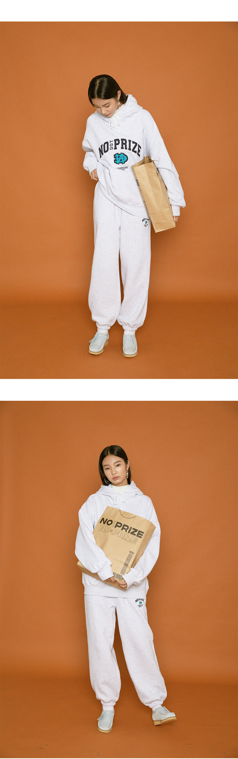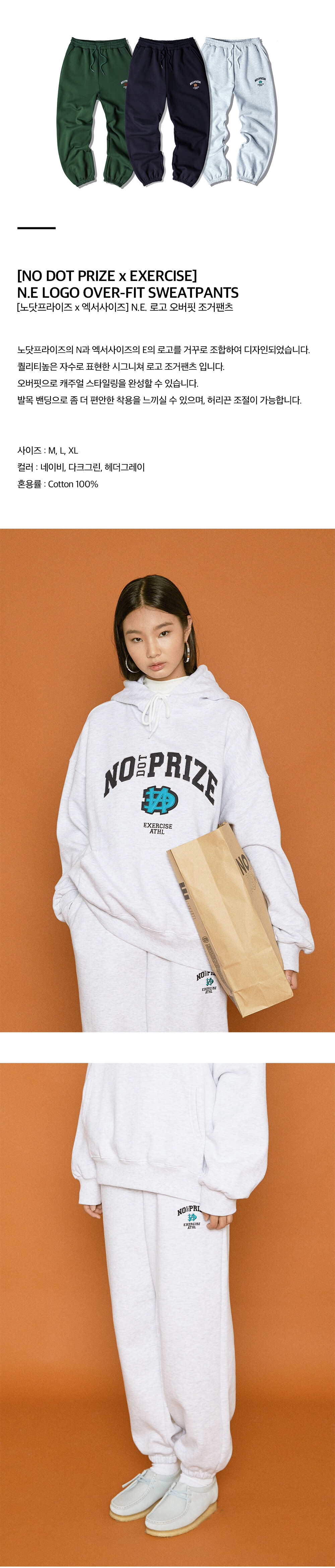 [리퍼브] 자수 N.E. 로고 오버핏 조거팬츠_헤더 그레이